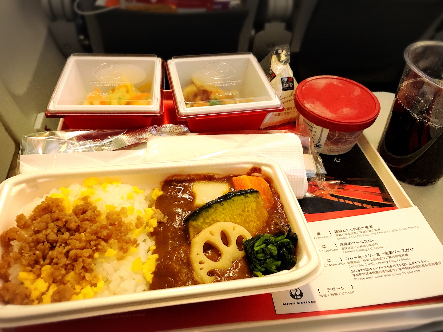 今回は往復JALで取っていきました。めっちゃ快適だしシートピッチ広いしすごい。